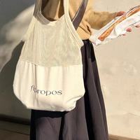 环保可重复使用的长手持拼接棉网袋杂货帆布棉网购物袋